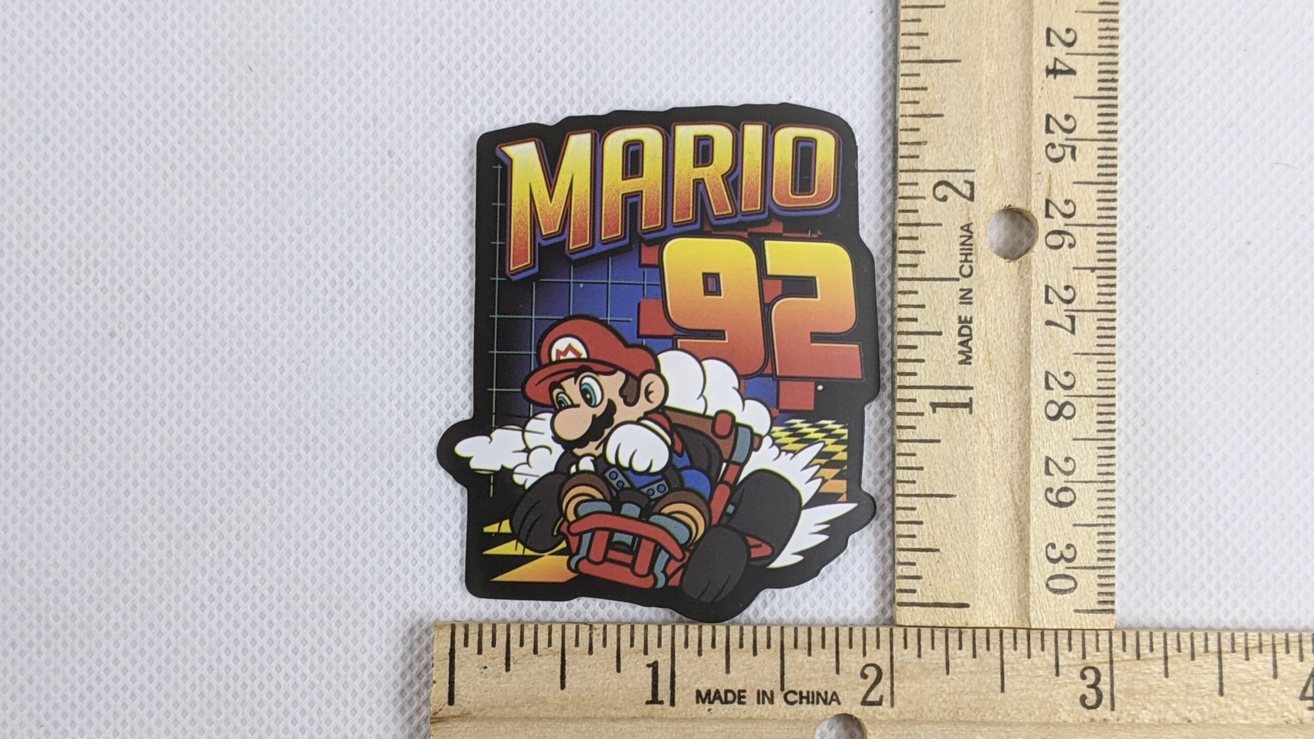Mario Kart 92 is a new vinyl sticker. Great on laptops, lockers, skateboards, and whatever else you want to sticker.