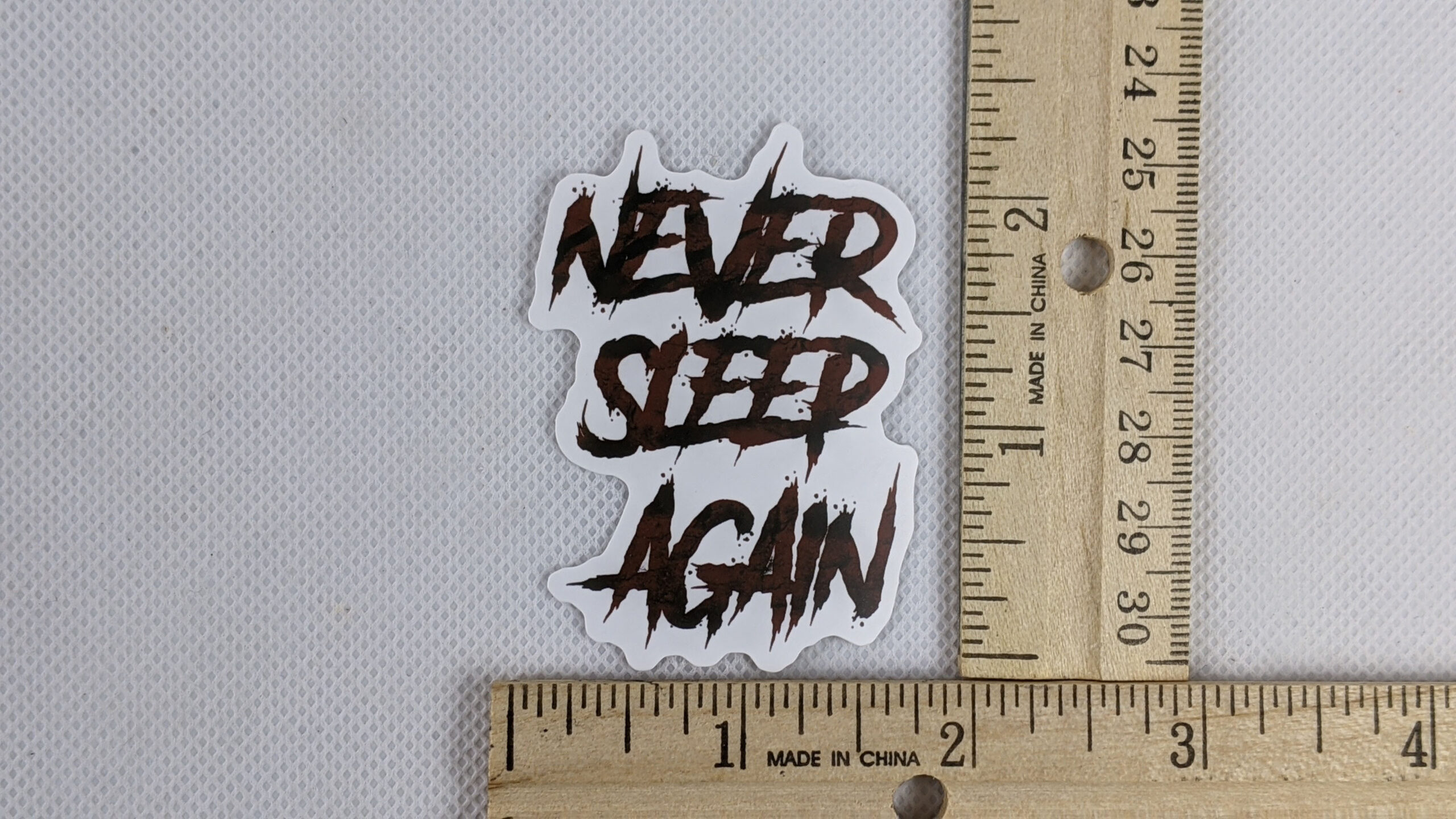 Never Sleep Again Nightmare On Elm Street is a new vinyl sticker.